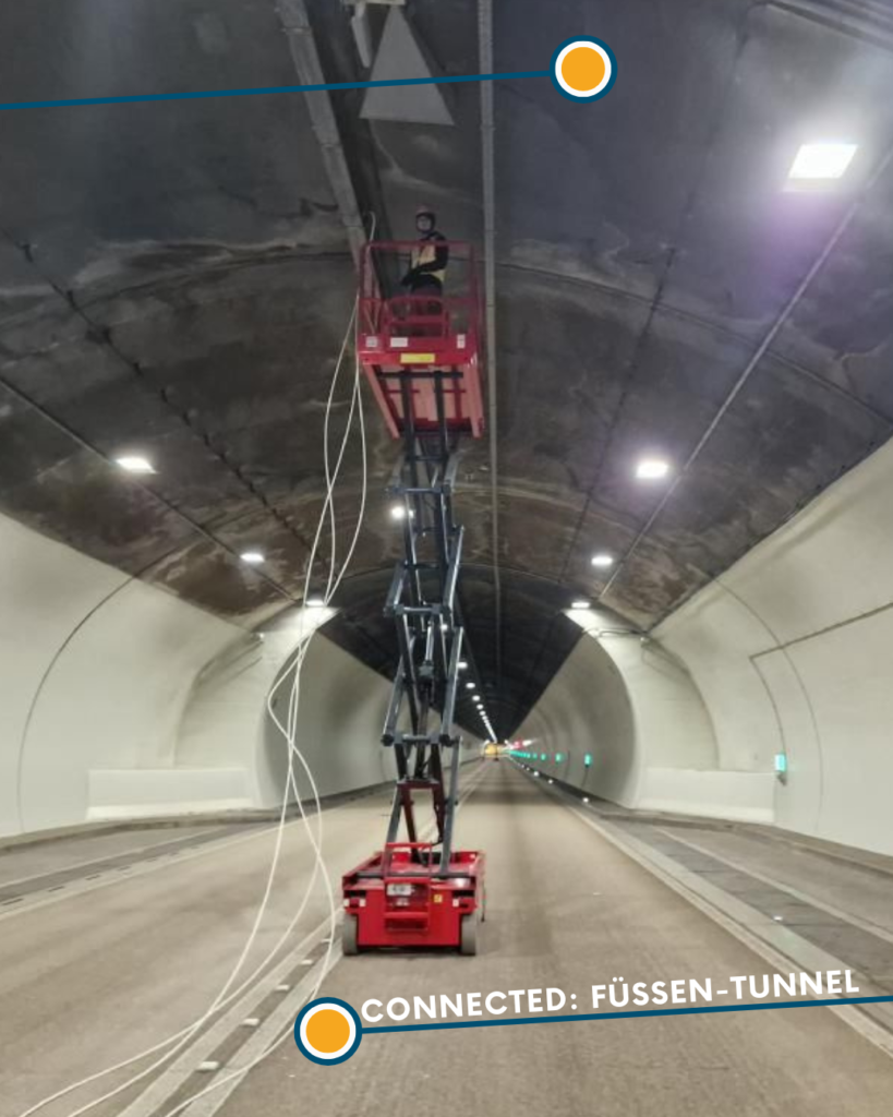 Wir haben diese Woche erfolgreich eine neue Glasfaserinfrastruktur im Füssen-Tunnel installiert und damit eine wichtige Verbindung zwischen Deutschland und Österreich geschaffen.