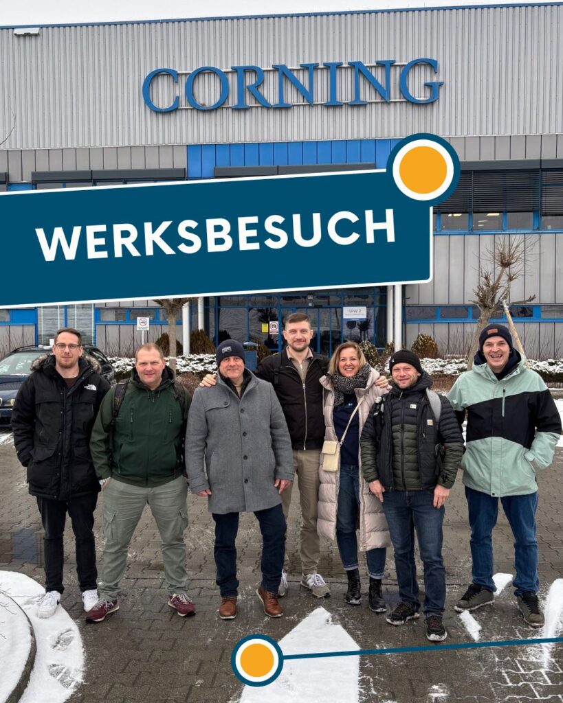 Beim Werksbesuch in Stryków, Polen mit Felix Nunn und Walentin Lis von Corning Incorporated erhielten unsere Mitarbeitenden, bestehend aus Fernmeldemonteuren, Planung und NOC, spannende Einblicke in verschiedene Produktionsstrecken und tauschten sich intensiv über aktuelle sowie zukünftige Lösungen im Glasfaserausbau aus.